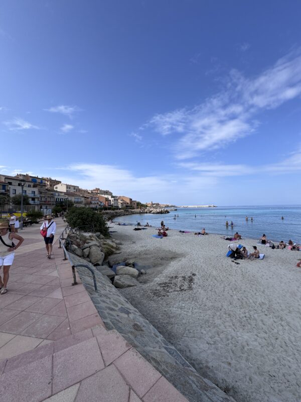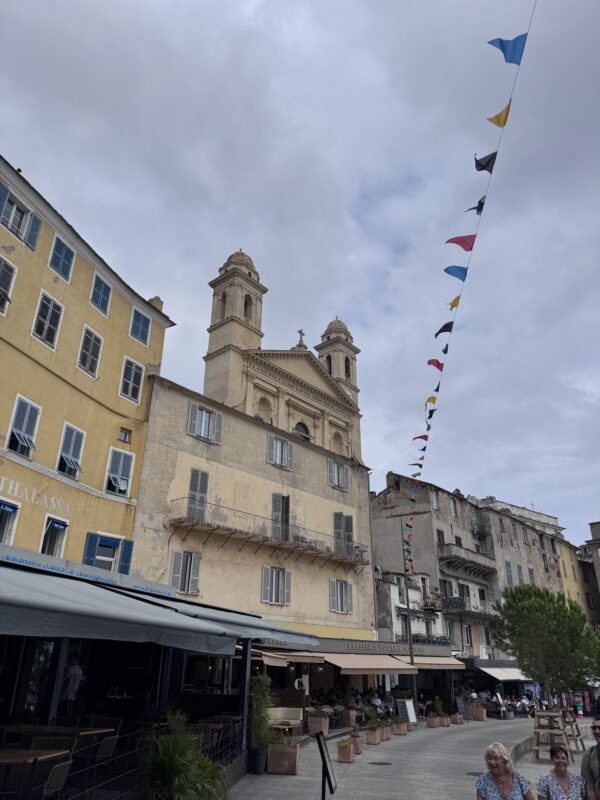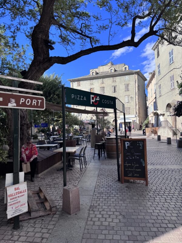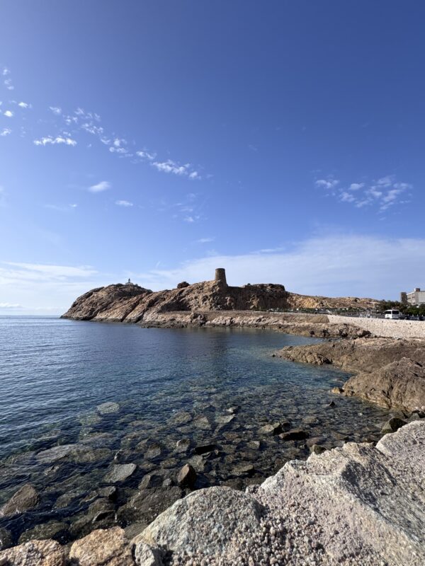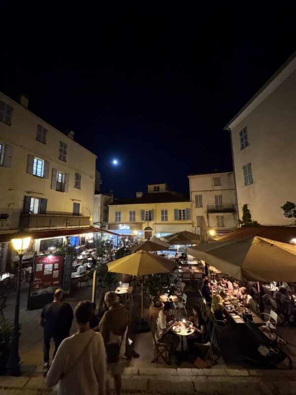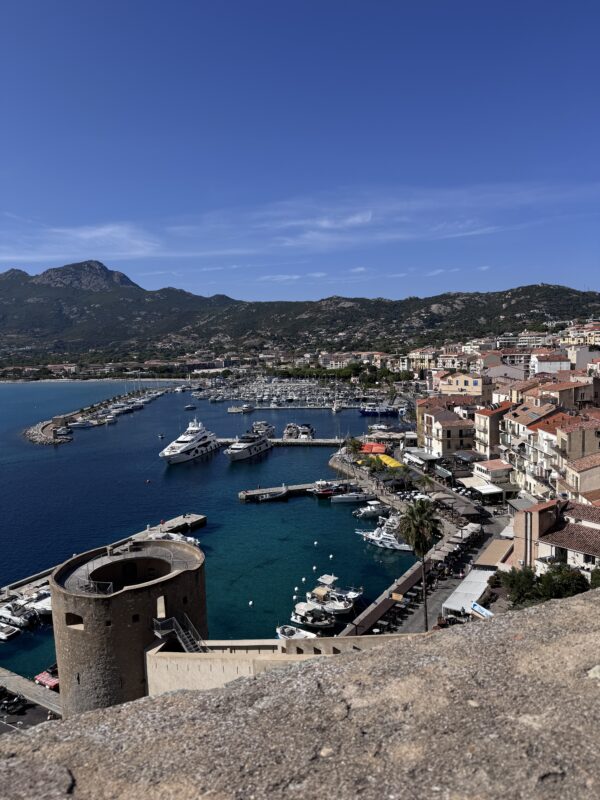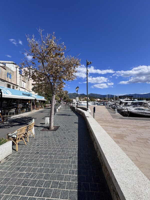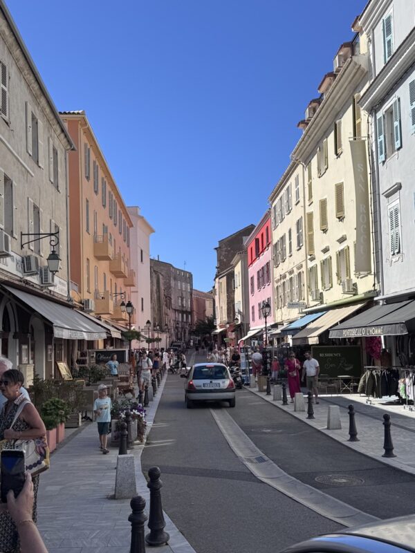 Aber L’Île-Rousse war jede Schweißperle wert. Eine wunderschöne, lebendige Stadt direkt am Meer, mit einer dieser Strandpromenaden zum Verlieben. Palmen, Eisverkäufer, das Glitzern des Mittelmeers und diese salzige Brise, die wie ein Hauch Erbarmen durch die Gassen wehte. Die Altstadt war wie aus einem Bildband: kleine Boutiquen, schattige Plätze, Bars mit Sofas draußen – alles irgendwie entspannt, stilvoll, mediterran.