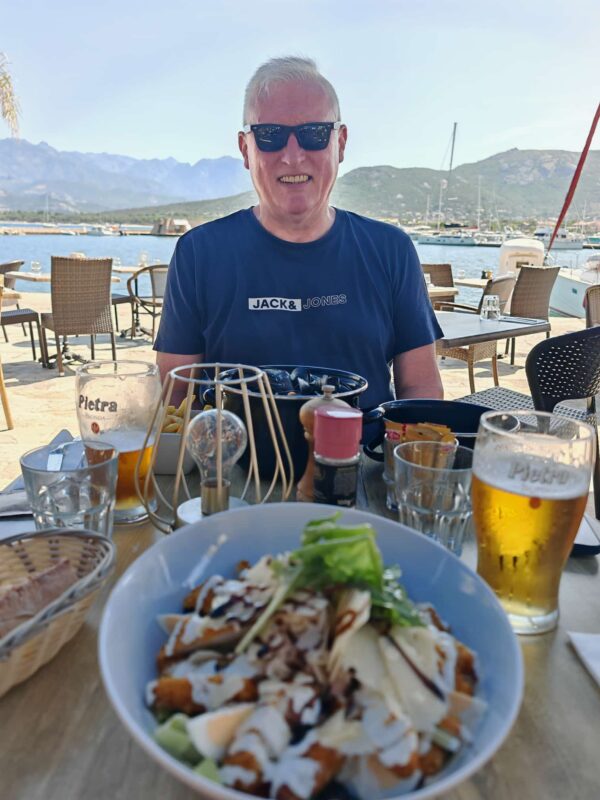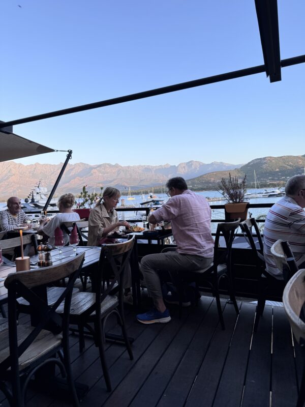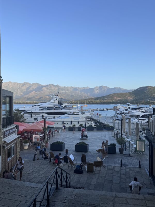 Wir entschieden uns spontan für ein Restaurant mit dem wohlklingenden Namen „Le Bistrot by Via Marine“, ohne große Erwartungen. Und dann das: Wir wurden auf eine versteckte Terrasse hinter dem Restaurant geführt – und der Blick, der sich uns dort bot, war einfach nur „Wow!“ Hafenpanorama, bergige Kulisse im Hintergrund, Sonne im Gesicht, Meeresbrise in der Nase. Man fühlte sich wie in einem Werbespot für „Das gute Leben“.