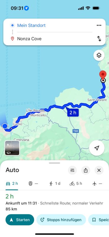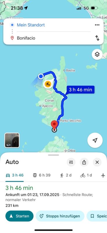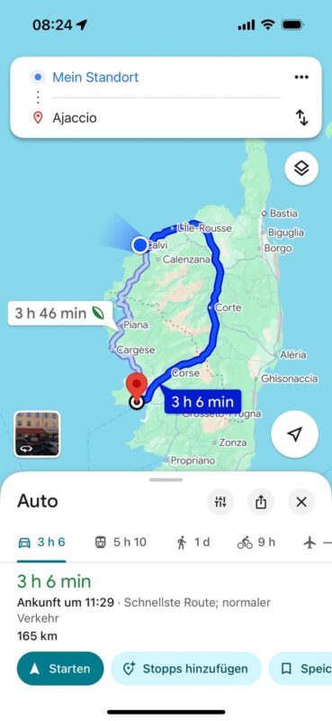 Jetzt war klar: Der Abend wurde kein entspannter Filmabend, …..sondern ein Roadtrip am nächsten Morgen. Ein Roadtrip zurück in die Vergangenheit – oder genauer gesagt: zurück nach Bastia. 113 Kilometer. Drei Stunden Autofahrt. Ein französisches Abenteuer.
