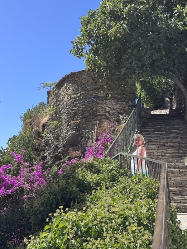 Der Aufstieg bei fast 30 Grad und steilen Gassen ließ unseren Kreislauf in etwa so reagieren wie Stefan auf französischen Ziegenkäse: skeptisch, dann widerwillig, dann erschöpft.
