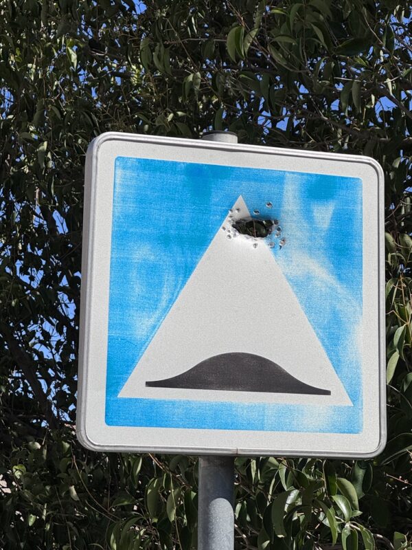 Auf 99 % aller Ortsschilder wurde der französische Name entweder übermalt oder gleich durchlöchert. Ja, richtig gelesen – durchschossen.
