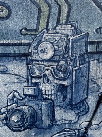 An einer Hausecke unten an der Flußpromenade hat ein Künstler aus Müll einen halben Hasen an die Wand genagelt. Daher auch der Name „Half Rabbit“…