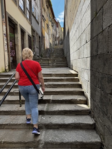 Karin hatte extra darauf geachtet, dass unser Hotel zentral liegt. Lag es auch. Leider sieht man auf der Karte keine Höhenangaben….puh. Es lag so ziemlich auf dem höchsten Punkt von Porto. Also mussten wir uns jeden Abend an den Aufstieg machen. Erinnerte mich irgendwie immer an den Almauftrieb 😉