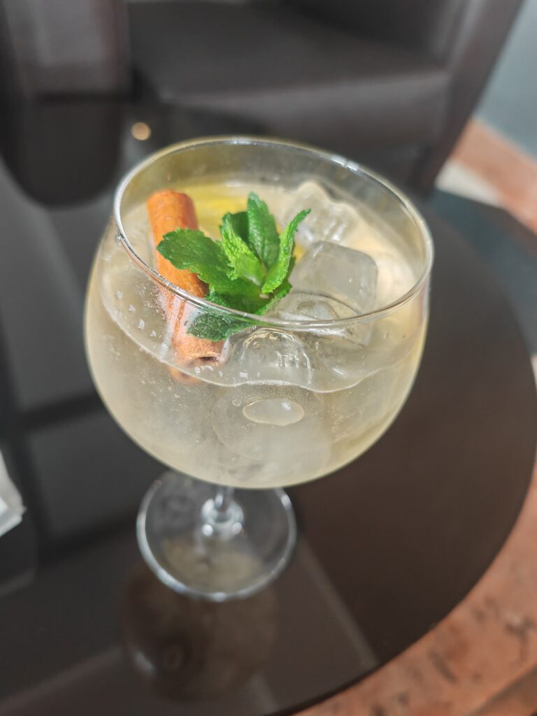 Und dann gibt es noch den Portotonico, Karin’s Lieblingsgetränk!!! Man nehme ein großes Glas, fülle Eis hinein, dann 0,2 l weißen Portwein, den Rest Tonic-Water, eine Zimtstange, Minze und etwas Zitrone. Schmeckt super erfrischend!